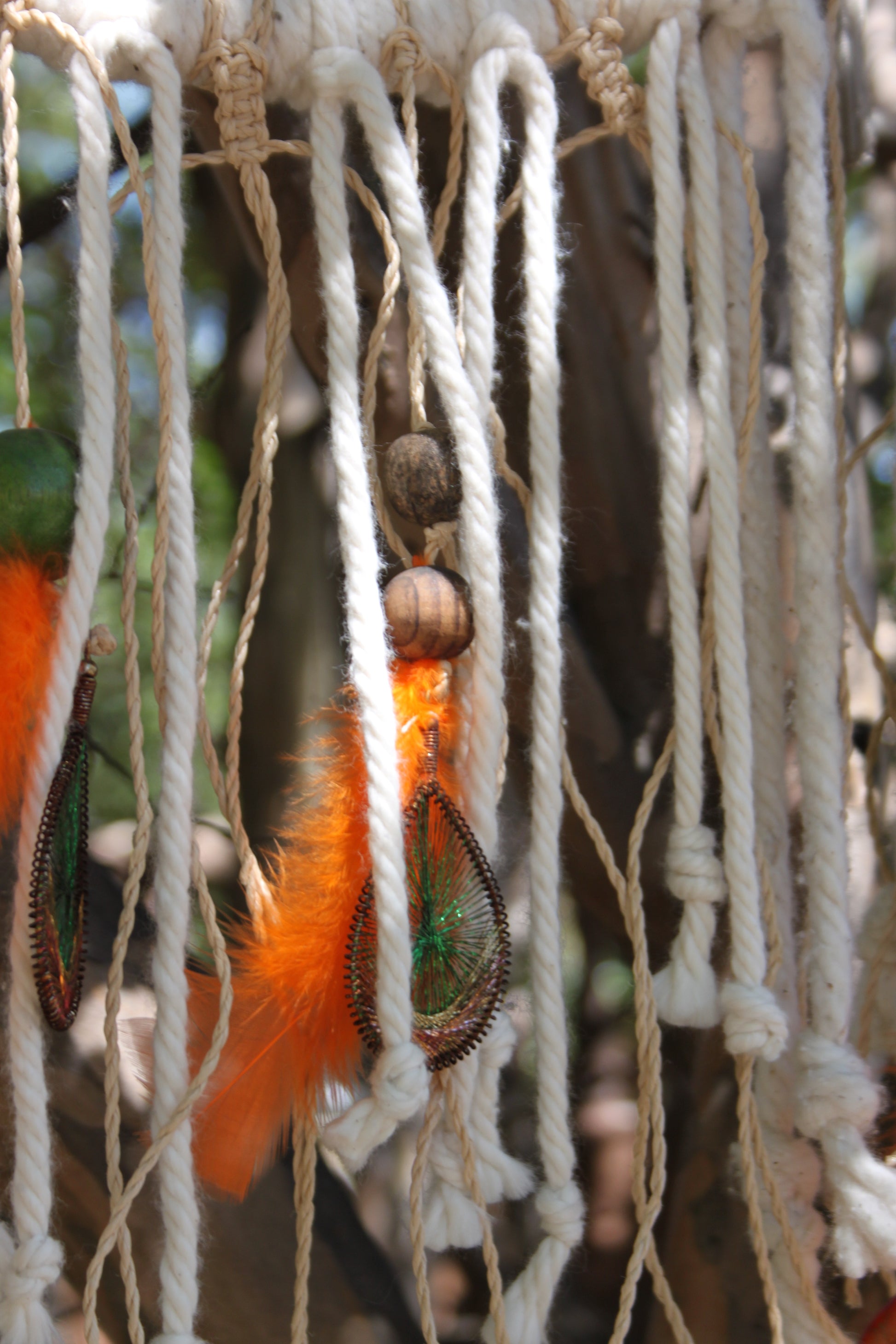 Our handcrafted boho dreamcatcher, meticulously woven with coarse white cord and adorned with bright orange feathers and white tassels, is a harmonious blend of aesthetics and spiritual significance. Its intricately woven web serves as a symbolic filter, capturing negative energies and allowing only positivity to flow through, ensuring peaceful and restorative energy in your space. The vivid orange feathers, representing the fire element, bring courage and vitality, while the color white symbolizes purity and clarity. As this dreamcatcher hangs in your space, it serves as a powerful guardian, creating an aura of serenity and protection. Its presence is a beautiful reminder to focus on the positivity of life and to nurture your spiritual and emotional well-being.