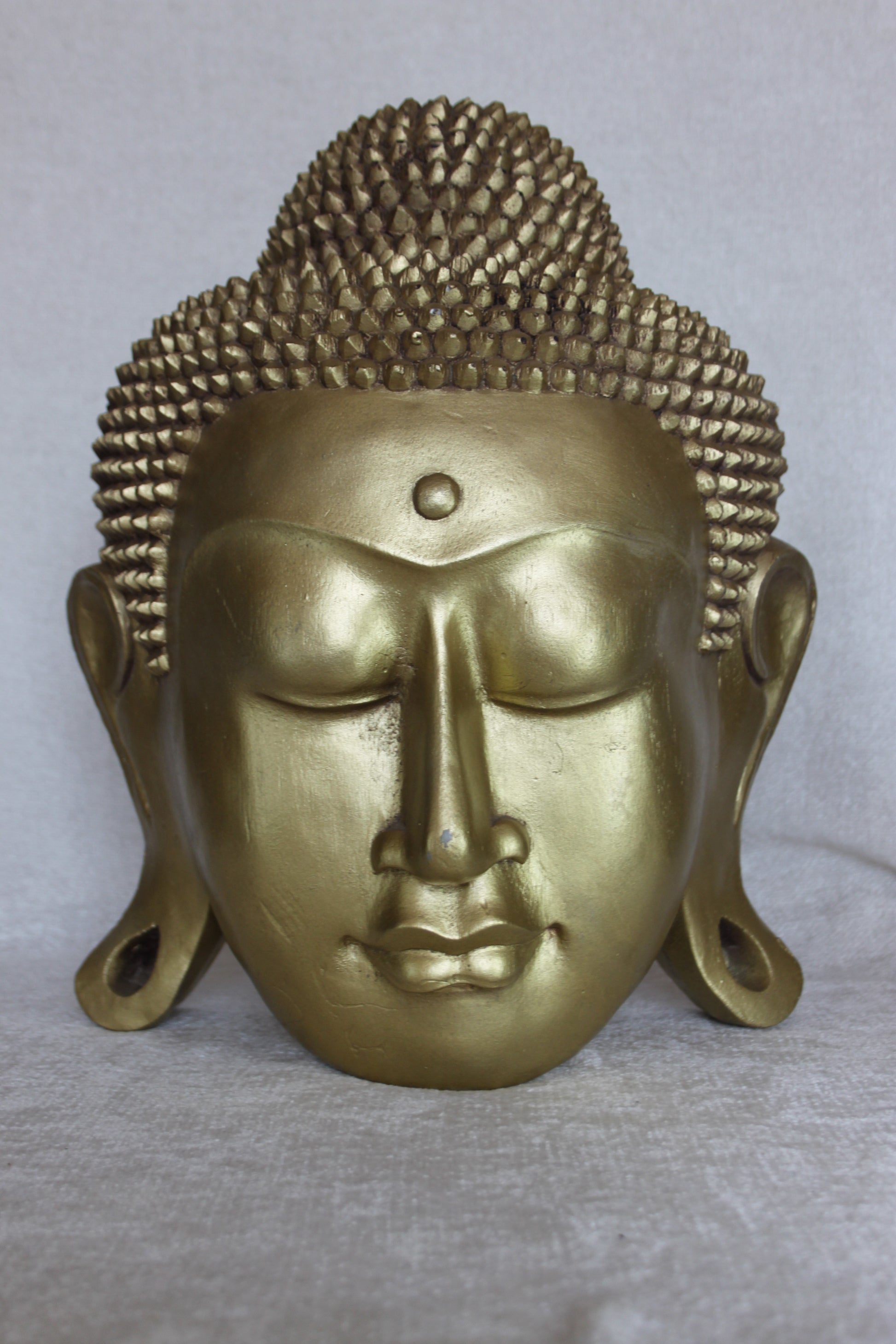 Elevate your space with the timeless beauty and spiritual significance of our Buddha Head Statue in Old Gold. This exquisitely crafted statue captures the serene and contemplative essence of Buddha's wisdom and compassion. The weathered gold finish adds a touch of vintage charm, creating a unique and captivating focal point in any setting. Whether placed in your meditation space or as a decorative element in your home, this Buddha Head serves as a visual reminder to cultivate inner peace, mindfulness, and spiritual harmony. Its elegant design and timeless symbolism make it a cherished piece that resonates with spiritual seekers and art enthusiasts alike, adding a touch of tranquility and reverence to your surroundings.