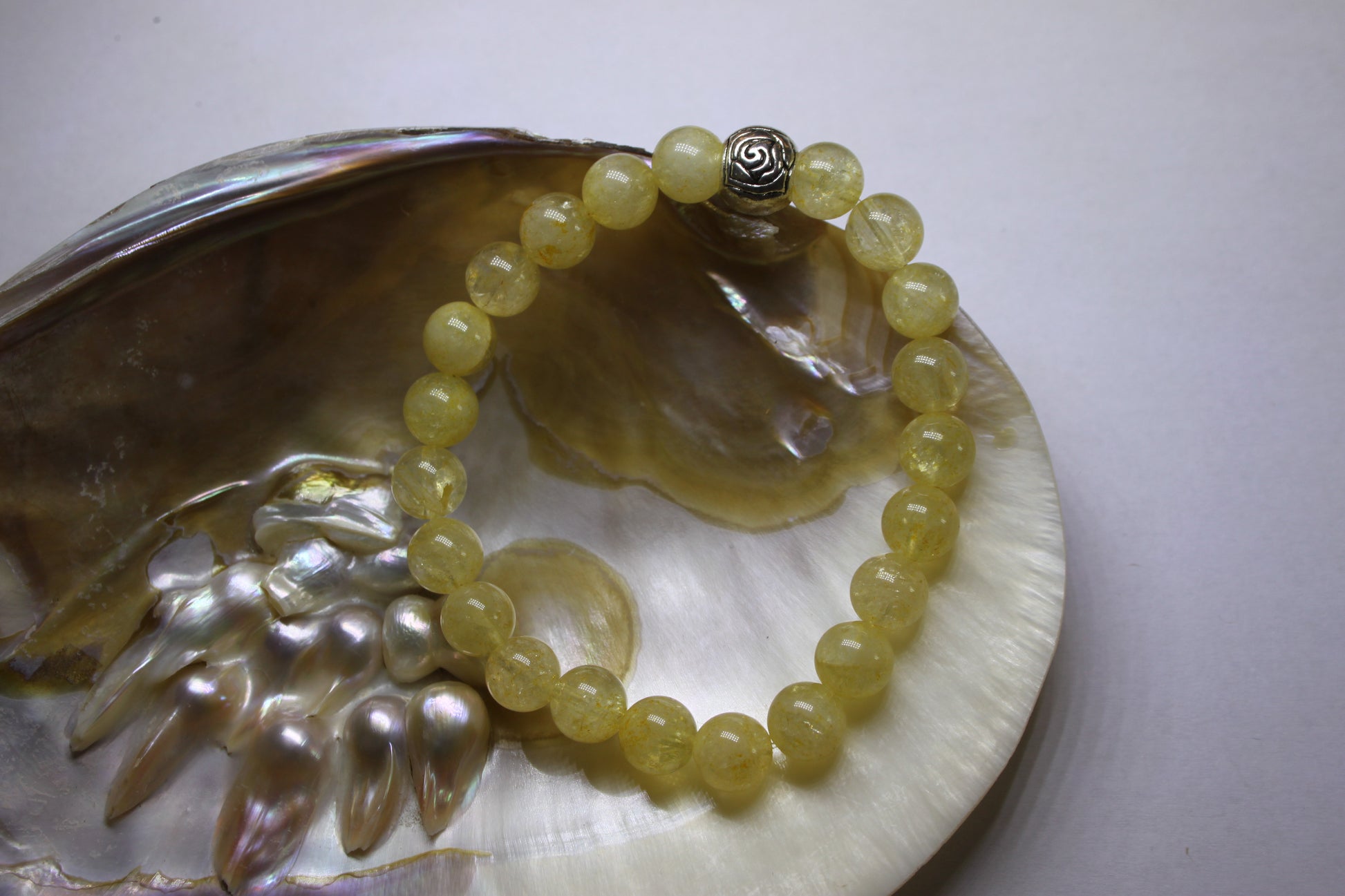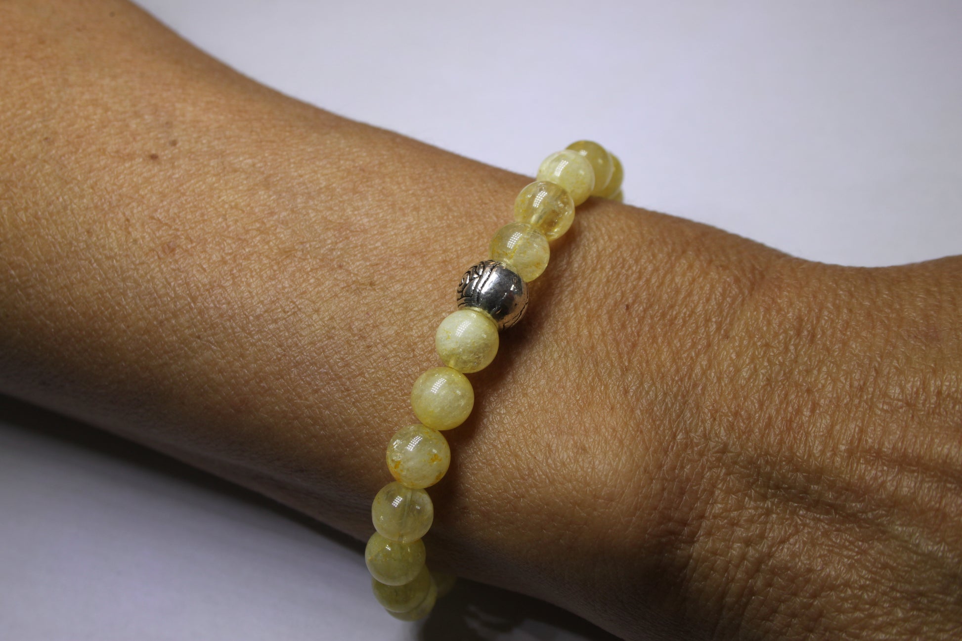 The Citrine Crystal Bracelet is a radiant and spiritually enlightening accessory. Citrine, often referred to as the "Merchant's Stone," is associated with abundance, prosperity, and personal power. This golden gem resonates with the solar plexus chakra, enhancing self-confidence, motivation, and clarity. It is believed to attract wealth and success while dispelling negativity and self-doubt. Wearing this bracelet can help one embrace a positive outlook, manifest opportunities, and maintain a bright and optimistic energy. Citrine is a wonderful crystal for those seeking personal transformation and the manifestation of their goals, making this bracelet a beacon of abundance and spiritual empowerment.