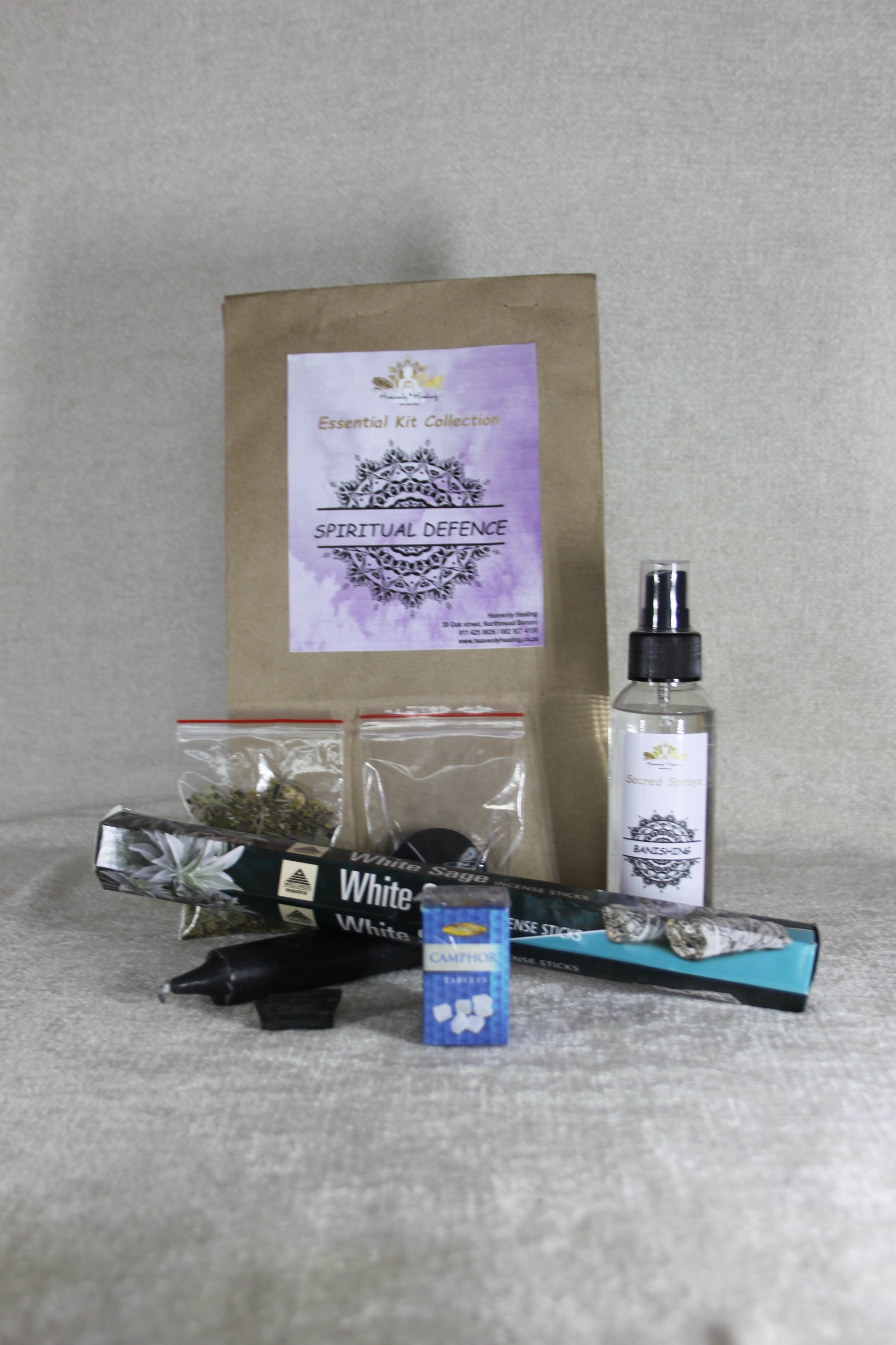 Protect and fortify your spiritual space with our Spiritual Defense Kit, a meticulously chosen collection to safeguard your energy and surroundings. The kit features White Sage Incense for purifying and clearing negativity, and Banishing Spray to ward off unwanted energies. The Black Candle symbolizes protection and grounding, while the Tourmaline Crystal provides a shield against negative forces, Camphor Blocks purify and dispel negativity, Charcoal Blocks enhance the potency of your rituals, and Imphepho adds a touch of sacred African tradition. Safeguard your spiritual practice with this specially curated Spiritual Defense Kit, fostering a shield of protection and positivity around you, your space, and your spiritual journey.