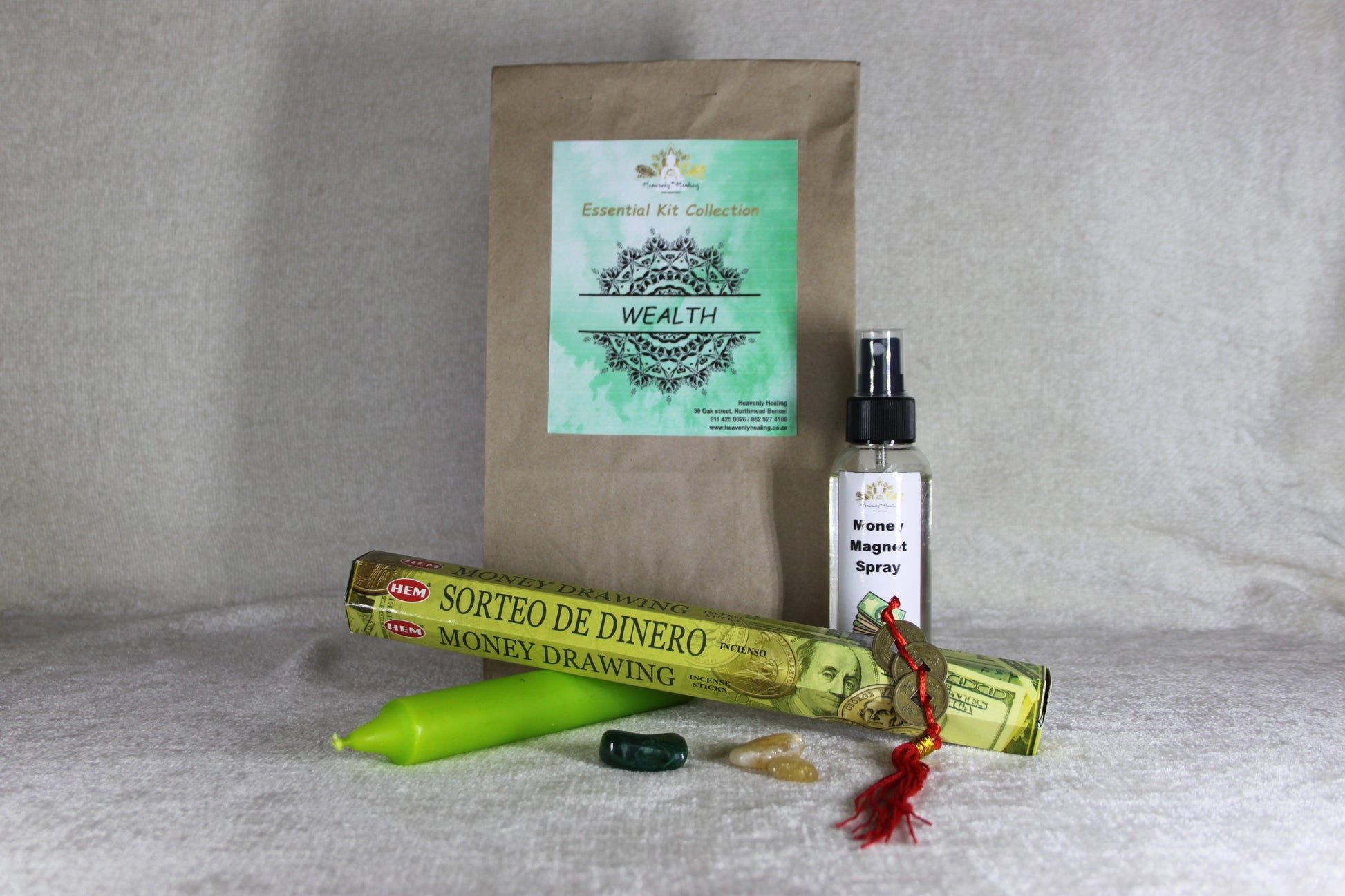 Attract prosperity and abundance into your life with our Wealth Kit, a thoughtfully curated collection to enhance your financial well-being and spiritual growth. The kit includes Money Drawing Incense, celebrated for its ability to manifest wealth, and Money Magnet Sacred Spray to elevate your money attraction energy. The Green Candle symbolizes financial growth and prosperity, while the Malachite Crystal brings wealth and transformation, the Citrine Crystal enhances abundance and manifestation, and Chinese Money Coins add a touch of ancient symbolism to your rituals. Immerse yourself in a journey of financial prosperity and spiritual growth, enveloped in the harmonious and abundant energies of this specially crafted Wealth Kit.