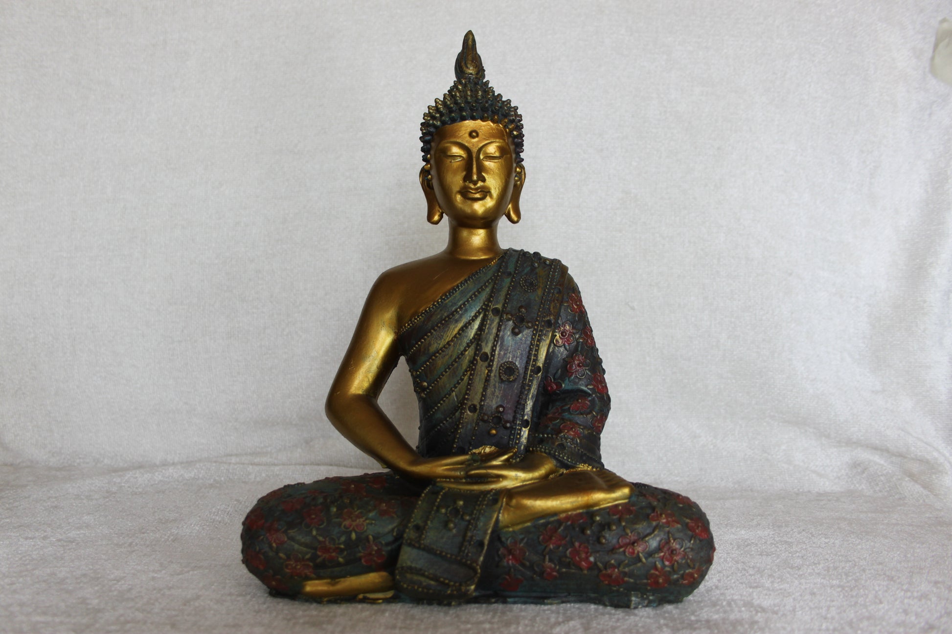 Elevate your surroundings with the serene beauty and spiritual significance of our Beautiful Meditating Buddha Statue, gracefully draped in flower-patterned cloth with the distinctive Ushnisha atop his head. Meticulously crafted, this statue captures the essence of inner peace and enlightenment. The intricate flower patterned cloth adds a touch of elegance and symbolism, creating a captivating and spiritually resonant centerpiece. Whether placed in your meditation space or as a decorative element in your home, this Buddha statue serves as a visual reminder to cultivate mindfulness, reverence, and a connection to the divine. Its exquisite design and profound symbolism make it a cherished piece that brings an atmosphere of tranquility and spiritual enrichment to your surroundings.
