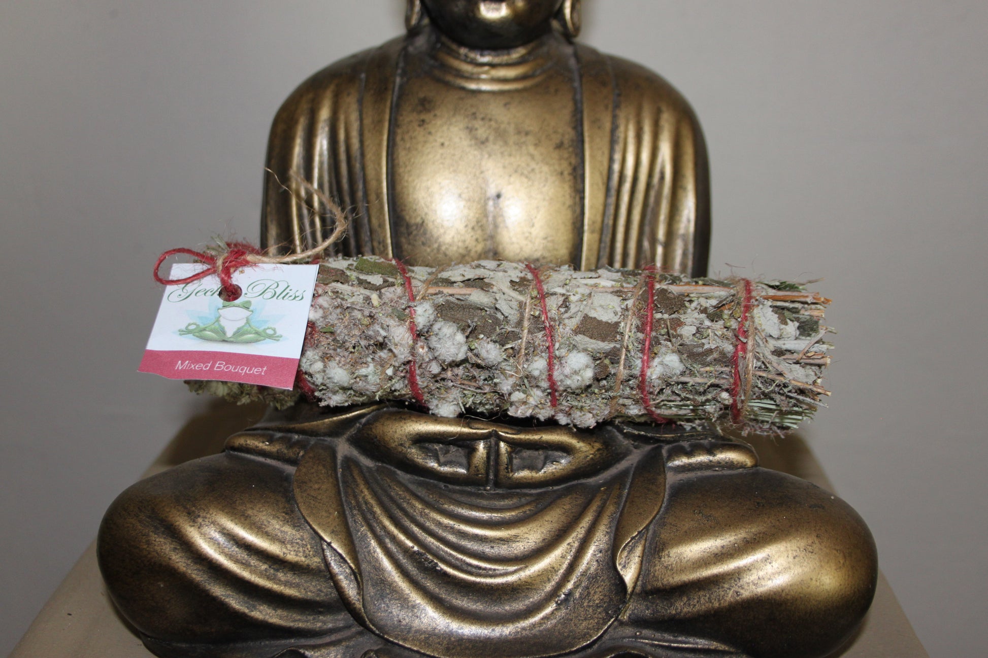Experience the harmonious and spiritually enriching blend of our Mixed Bouquet Smudge Stick, thoughtfully crafted to elevate your spiritual practice and cleanse your space with a symphony of fragrances and energies. Lavender, celebrated for its calming properties, imparts tranquility and relaxation; Imphepho, rooted in African tradition, connects you with your ancestral heritage and invites spiritual clarity; Rosemary fosters mental clarity and purification; and Sage, renowned for its purification properties, clears negative energy. This smudge stick offers a versatile and powerful ritual to release negativity, protect your space, and create a serene environment ideal for meditation, prayer, or daily rituals. Immerse yourself in the diverse and spiritually harmonizing energies of this Mixed Bouquet, embracing its soothing, purifying, and spiritually enriching essence as you embark on a journey of inner purification and spiritual growth.
